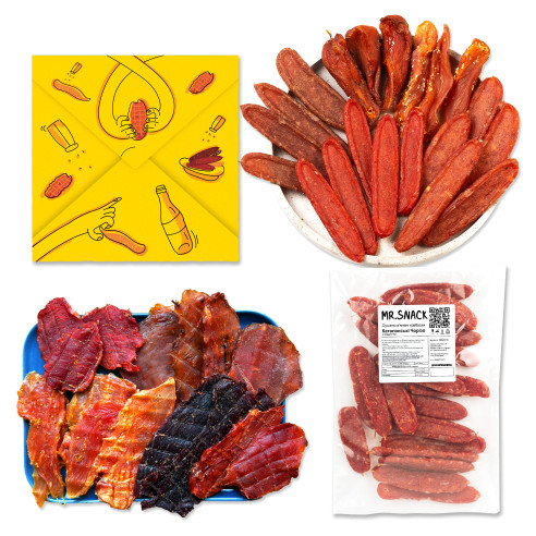 Курка гриль, Курка паприка, Курка горчица, Курка часник, Курка з цибуленю Яловичина, Каталонські Чорізо, ковбаски Хабанеро, ковбаски Турунська, ковбаски Карнації, Джерки з паприкою, Джерки з кунжутом, Свинина, Свинина у вишні, Пекінська качка.