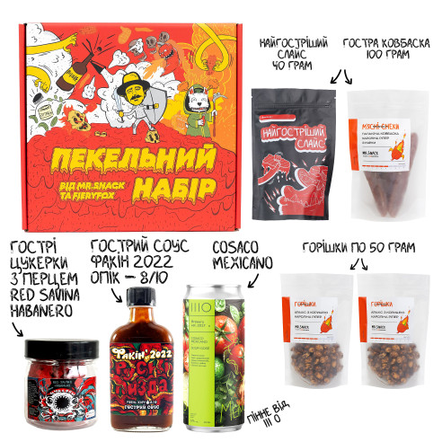 Справжній вибух смаків та гостроти, який не залишить байдужим жодного любителя гострих страв. Кожен продукт у цьому наборі має свою унікальну історію та характер, створюючи неповторний гастрономічний досвід.